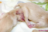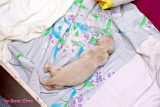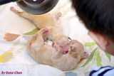 就在 7/24 晚上十點半開始,當我一接到電話就馬上飛奔過去,但是很可惜的是老大不幸去世了,因為在場的兩個媽媽都沒有經驗,來不及將胞膜已破卻仍卡在產道的小狗接生出來,小狗就被羊水窒息而死了!不然老大可是所有新生兒裡體格最好的一隻呢!