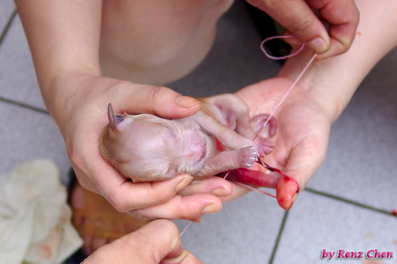 剛出生的小狗我們會幫他綁臍帶。